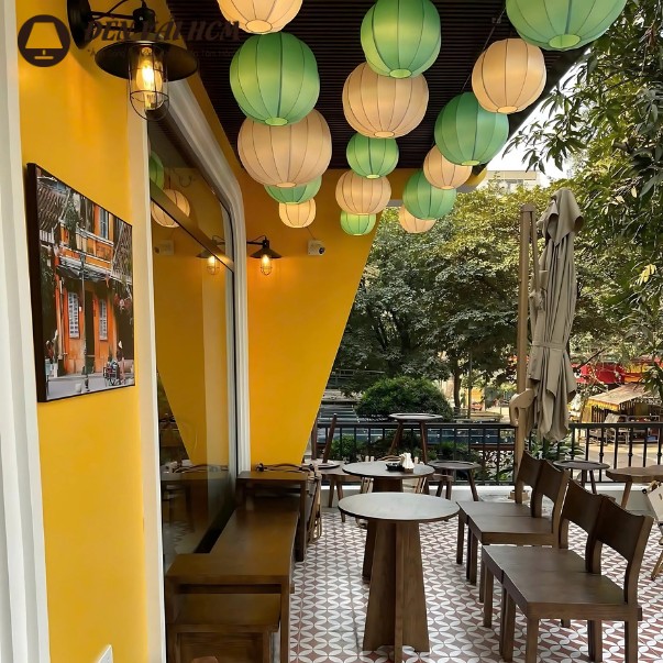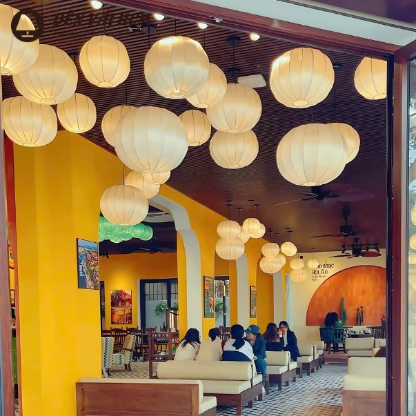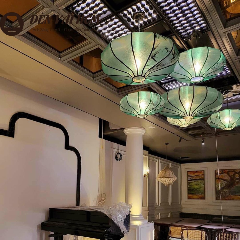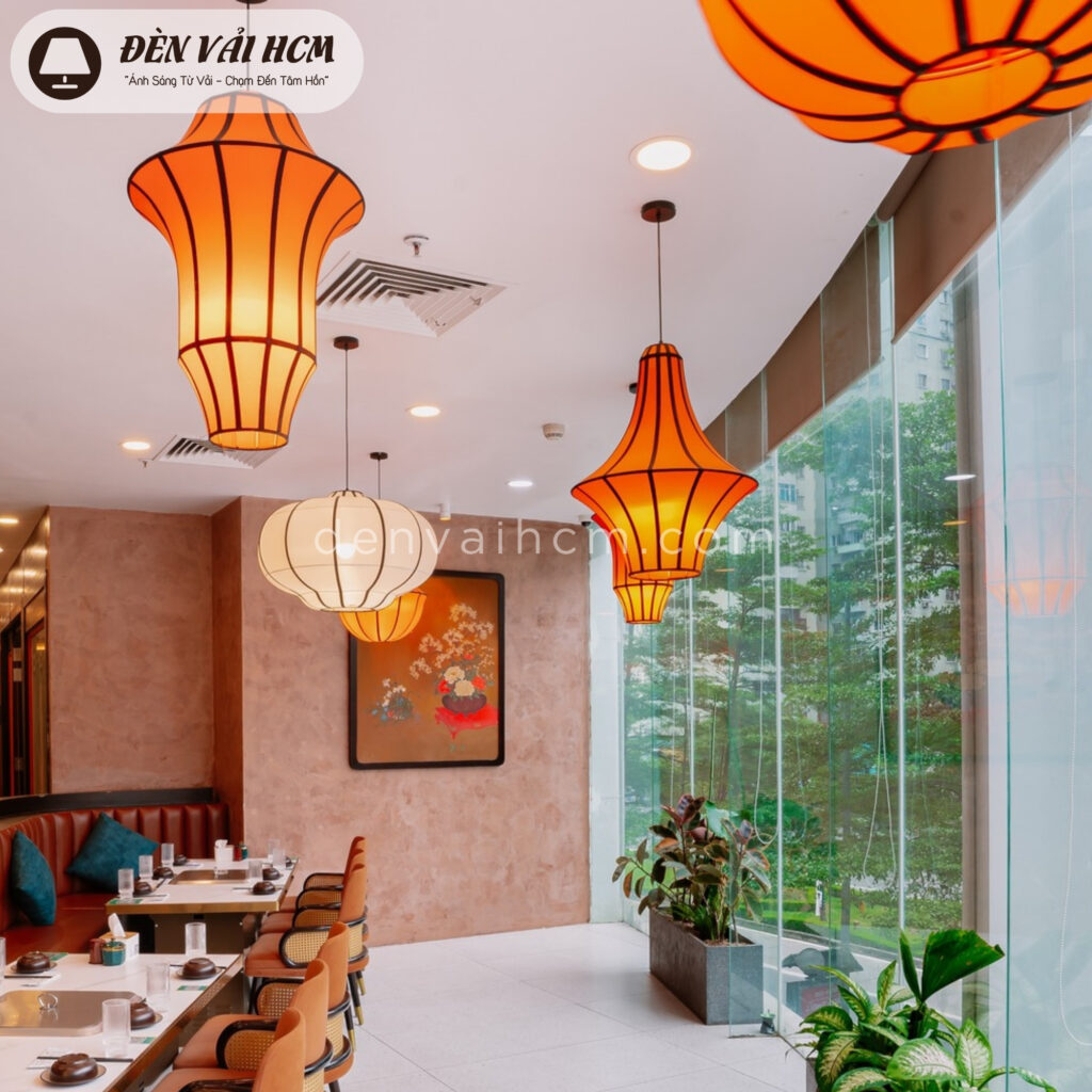 • Tại một số nhà hàng cao cấp, chúng tôi sử dụng đèn vải màu nâu socola hoặc xanh rêu đậm để tạo cảm giác sang trọng, trầm mặc và tinh tế.