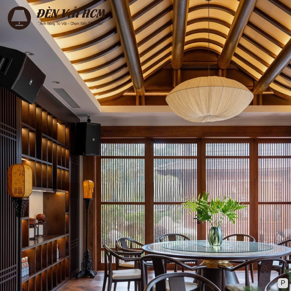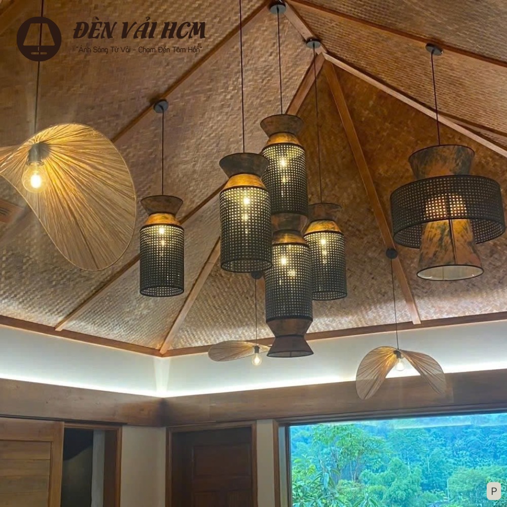 • Góc nhìn từ dự án: Tại một số không gian cafe và homestay chúng tôi thực hiện, việc sử dụng đèn vải làm từ sợi tự nhiên đan xen với vải lanh thô, hoặc chao đèn từ vải tái chế không chỉ tạo ra vẻ đẹp mộc mạc, chân thực mà còn truyền tải thông điệp về lối sống có trách nhiệm. Ánh sáng vàng dịu nhẹ từ những chiếc đèn này kết hợp với chất liệu thô mộc tạo nên bầu không khí thư thái, gần gũi.