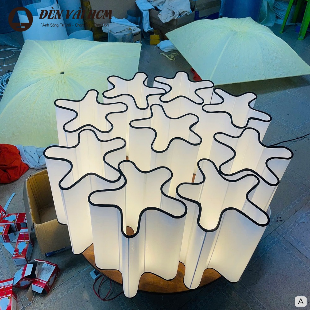 • Hình Khối Phức Tạp Hơn : Lấy cảm hứng từ thiên nhiên, các hình dáng mềm mại, uốn lượn, bất đối xứng sẽ lên ngôi. Đèn vải không chỉ là vật trang trí mà còn là những tác phẩm điêu khắc ánh sáng, tạo điểm nhấn ấn tượng. Các hình khối lấy cảm hứng từ mây, lá, hoa, hoặc các hình dạng trừu tượng, bay bổng sẽ rất phổ biến.